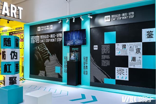 现场,得物App呈现了兼具跨界融合、创意碰撞和科技范的多维度创新秀场。进入带有得物App标识的“极光蓝箱子”,得物App品牌的定制创意字体、AR虚拟试穿技术、各式富有设计感的联名商品如同“开箱体验”一般呈入眼帘。作为全球最大潮流电商和最大潮流文化社区,得物App备受年轻人青睐,更是扎根于自身的年轻属性,向外呈现设计的跨界融合趋势、科技驱动效应和消费赋能作用。