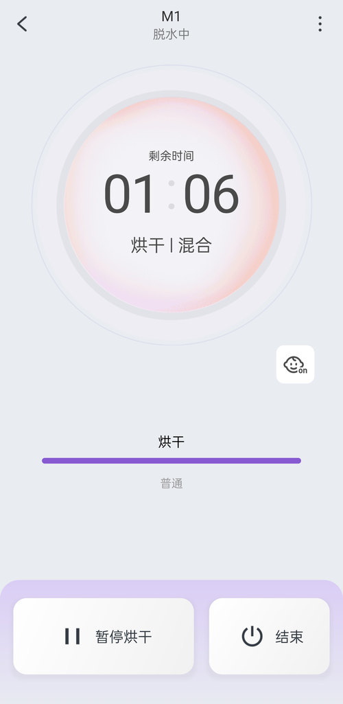 正在进行中的洗护程序也能直接在手机上查看,并了解剩余时间