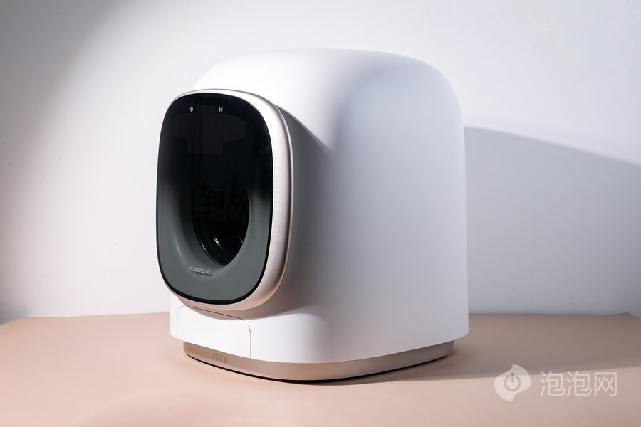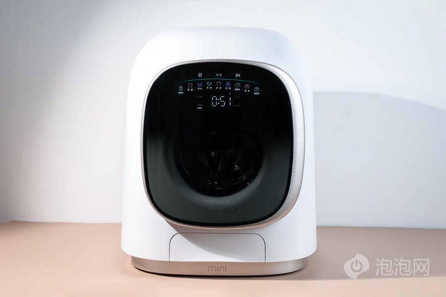 首先,我们先来看看石头分子筛迷你洗烘一体机M1的外观,这是一款滚筒式的洗衣机产品,所以采用的是侧开面的方式,适合放在家中稍高的位置,比如台面或者矮柜上。而这款产品整体尺寸大小仅为428×489×512mm(含门体),所以在初看石头分子筛迷你洗烘一体机M1时,给我的第 一印象是像一款户外猫包,而且与普通洗衣机方正硬朗的外观设计不同,石头分子筛迷你洗烘一体机M1非常的圆润可爱,各个角度的线条也都非常的柔和;而且在整个产品设计上这款mini的洗烘一体机没有一个实体按键,主要通过门体的触屏来完成操作,整体风格就是现在年轻人非常喜欢的极简风。