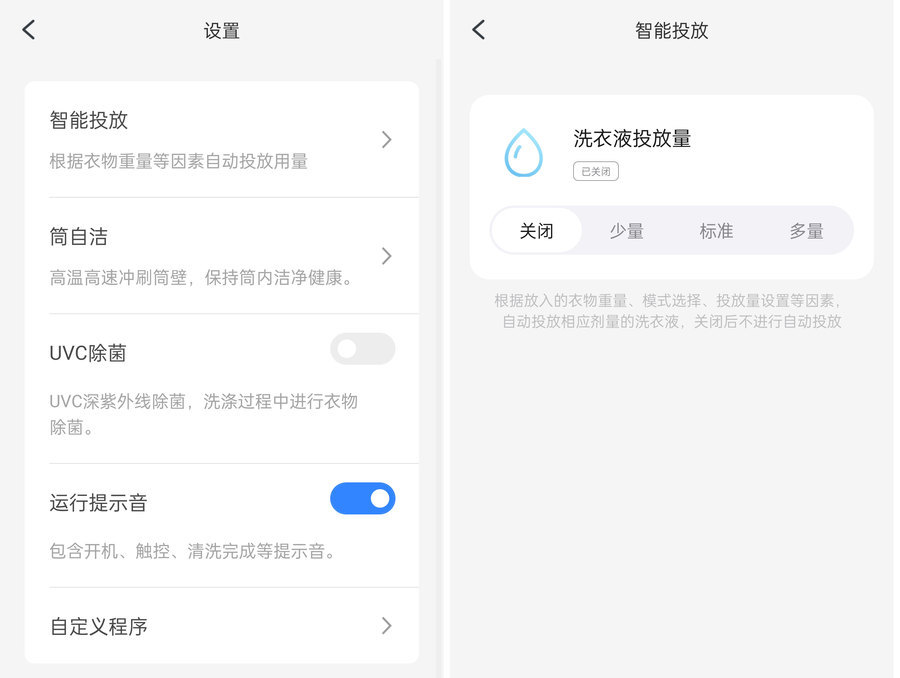 手机APP上还可设置洗衣机更多功能,比如洗衣液的投放量等