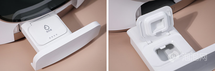 洗衣液智能投放盒右侧还有滤网清洁口
