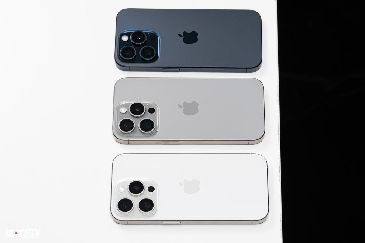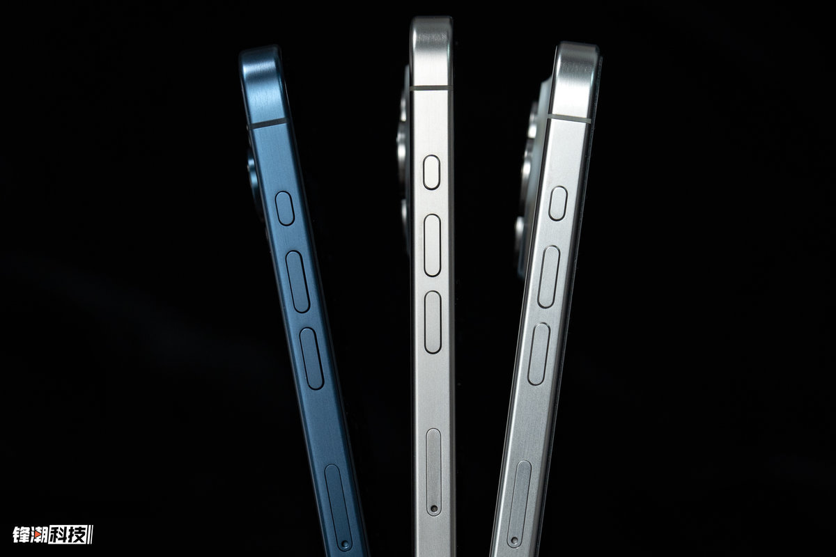 白色钛金属则是白色为主色调,背板有点灰蒙蒙的感觉,银色的中框搭配起来同样非常高级。蓝色钛金属有点偏向iPhone 12 Pro 系列的海军蓝,但是更偏深色。黑色钛金属的观感与上代差不太多,还是很深邃的黑色,高级且沉稳。
