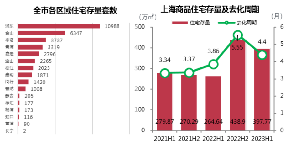 上海中原数据显示,截止6月底,上海市住宅存量套数为37437套,浦东新区以10988套遥遥领先,其次为金山区,新房存量6347套。