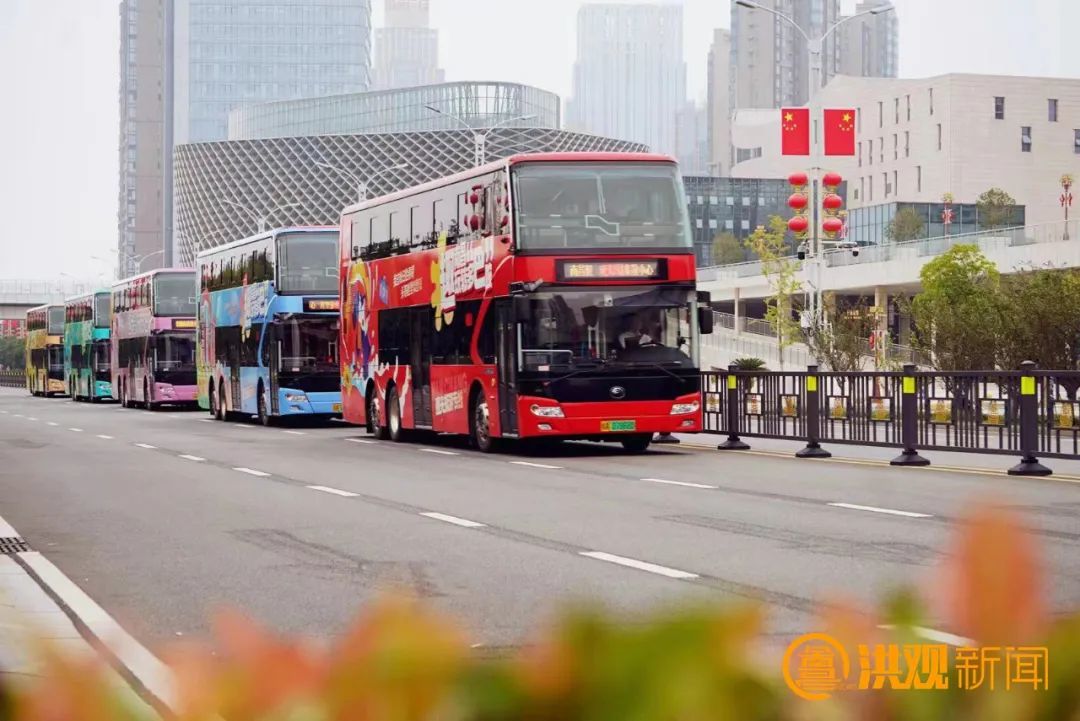 旅游集散中心-翠岩路-招贤大道-工农路-八面山路-磨盘山南路-梅岭大道-嘉言路-学府大道-前湖大道-赣江中大道-世贸路-丰和中大道-会展路-赣江中大道-赣江北大道-南昌舰主题园
