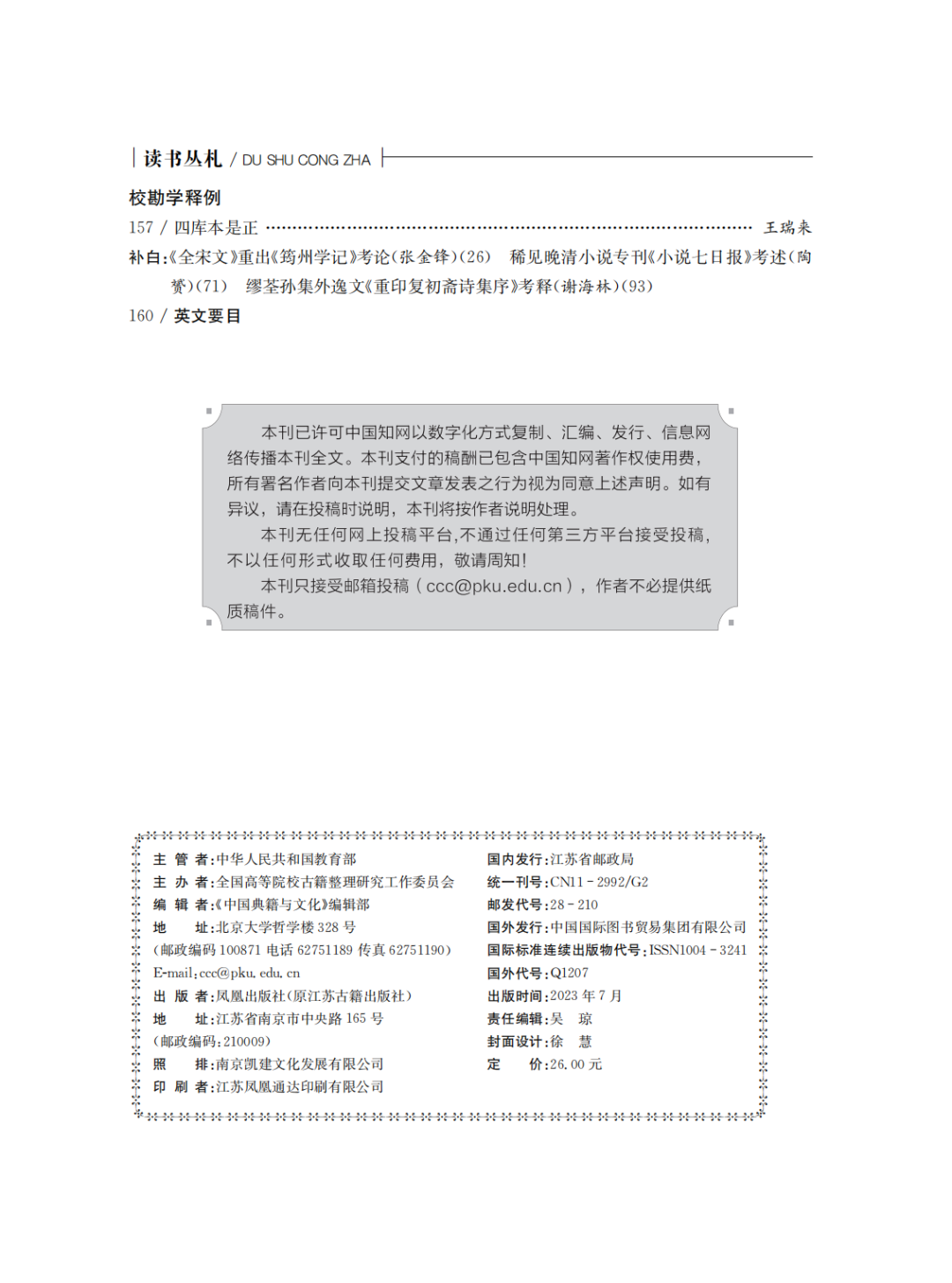 二、本刊原为季刊,自2024年起改为双月刊,每年二、四、六、八、十、十二月各一期,凤凰出版社出版。