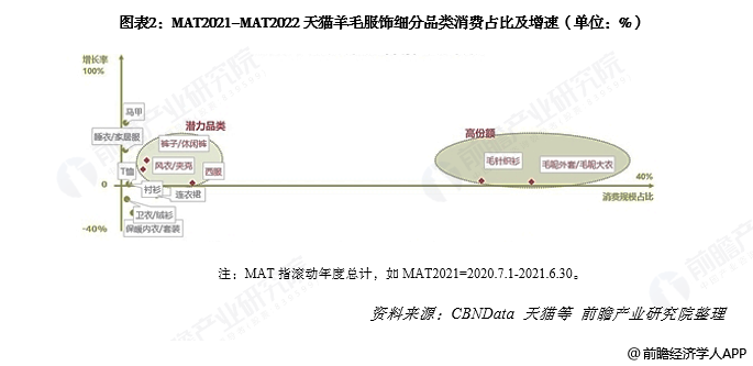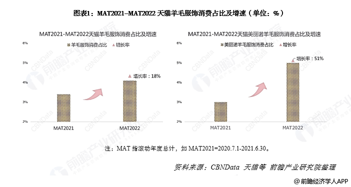 前瞻产业研究员:根据第一财经商业数据中心(CBNData)联合THE WOOLMARK COMPANY及天猫发布的《2022羊毛材质消费趋势洞察》,2022年度,天猫羊毛服饰消费占比同比增长18%,其中美丽诺羊毛服饰的消费占比同比增长51%,羊毛类服饰持续受到消费者的青睐。