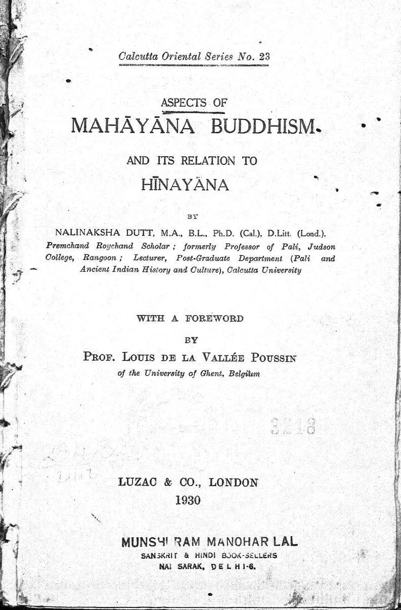 Nalinaksha Dutt著Aspects of Mahāyāna Buddhism and Its Relation to Hīnayāna