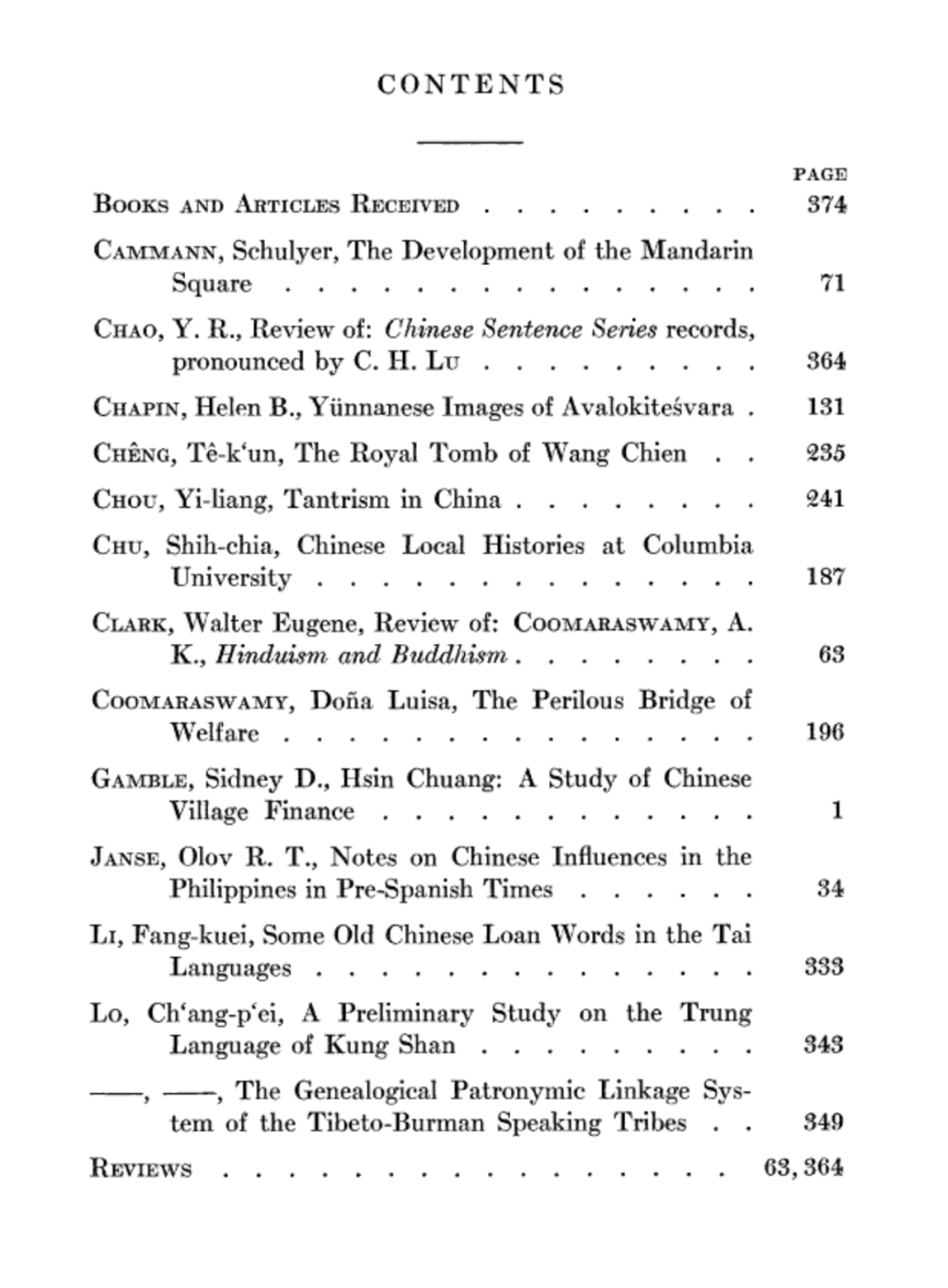 1945年《哈佛亚洲学报》第8卷第3、4号