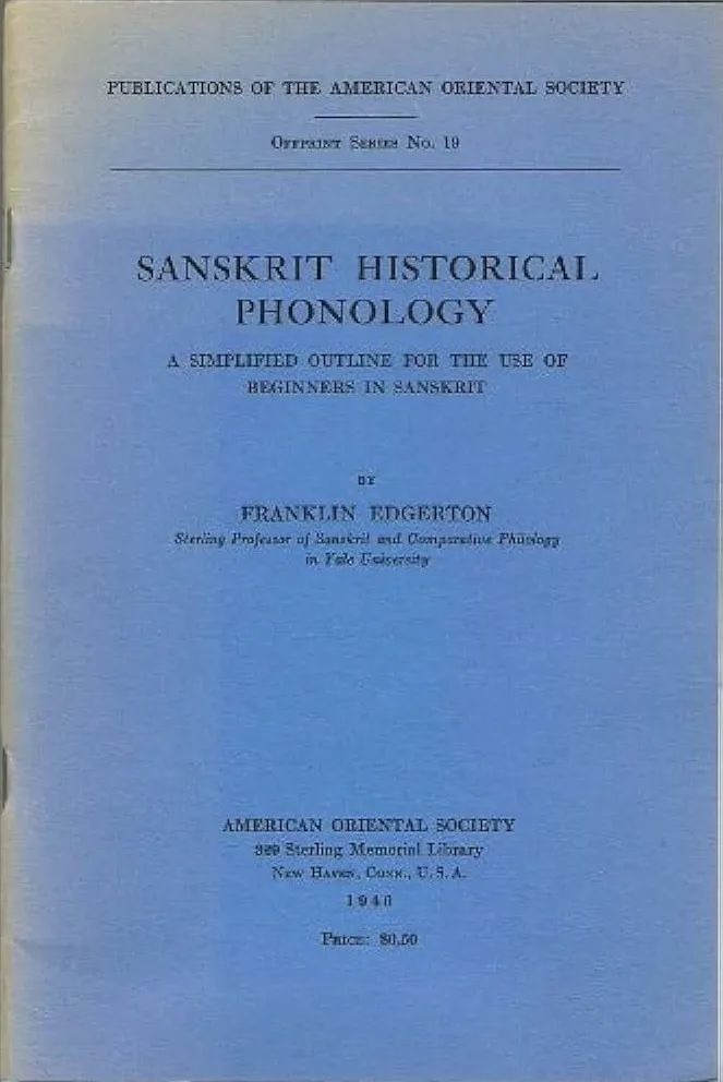 15. Sanskrit Historical Phonology, A Simplified Outline for the Use of Beginners in Sanskrit, 作者Franklin Edgerton, 这是《美国东方学会学报》出版的一种增印本(Supplement),标为第5号,出版时间是1946年。书很薄,仅仅31页,只能算是一本小册子。