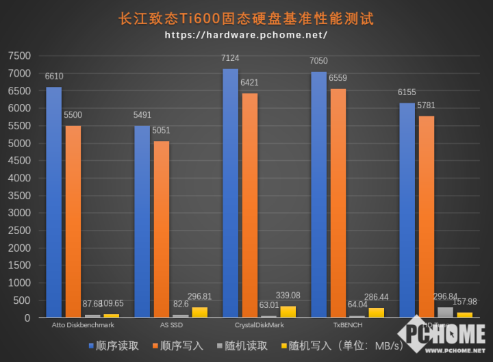 接下来我们看看长江致态Ti600在几款常用基准测试软件中的表现。