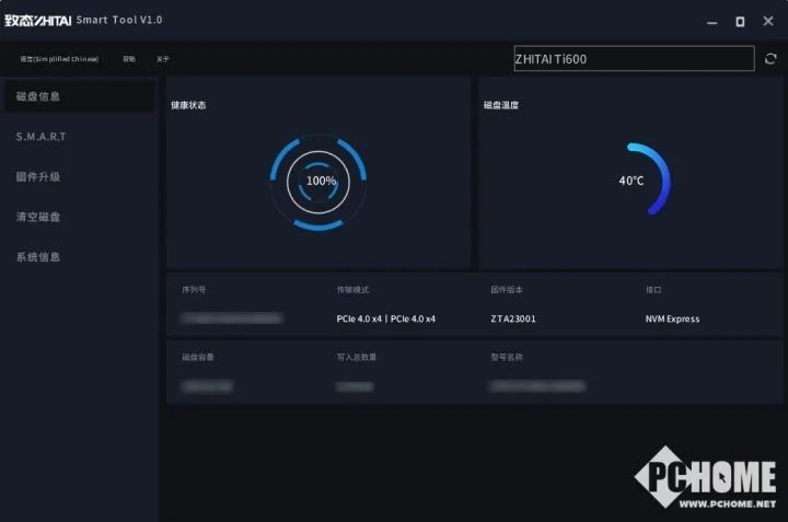 值得一提的是,长江存储还为Ti600开发了智能控制软件Smart Tool,通过这个软件可以查看硬盘的健康状态,运行温度,固件升级,也有清空磁盘等功能,帮助我们更直观地了解自己的硬盘状态,还是十分实用的。