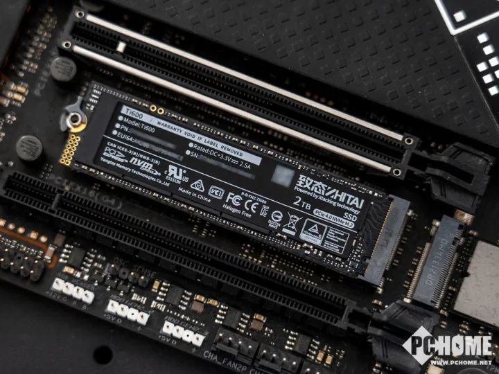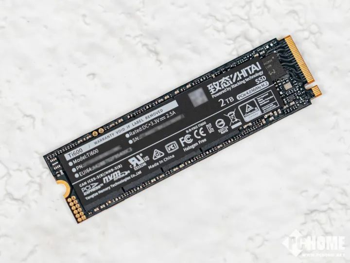 致态Ti600采用黑色PCB板,基于长江存储晶栈®Xtacking®3.0架构设计,单面闪存颗粒布置,厚度仅有2.2mm。超薄的设计可以适应,十分适合空间有限的位置,例如笔记本电脑或者小型迷你主板。