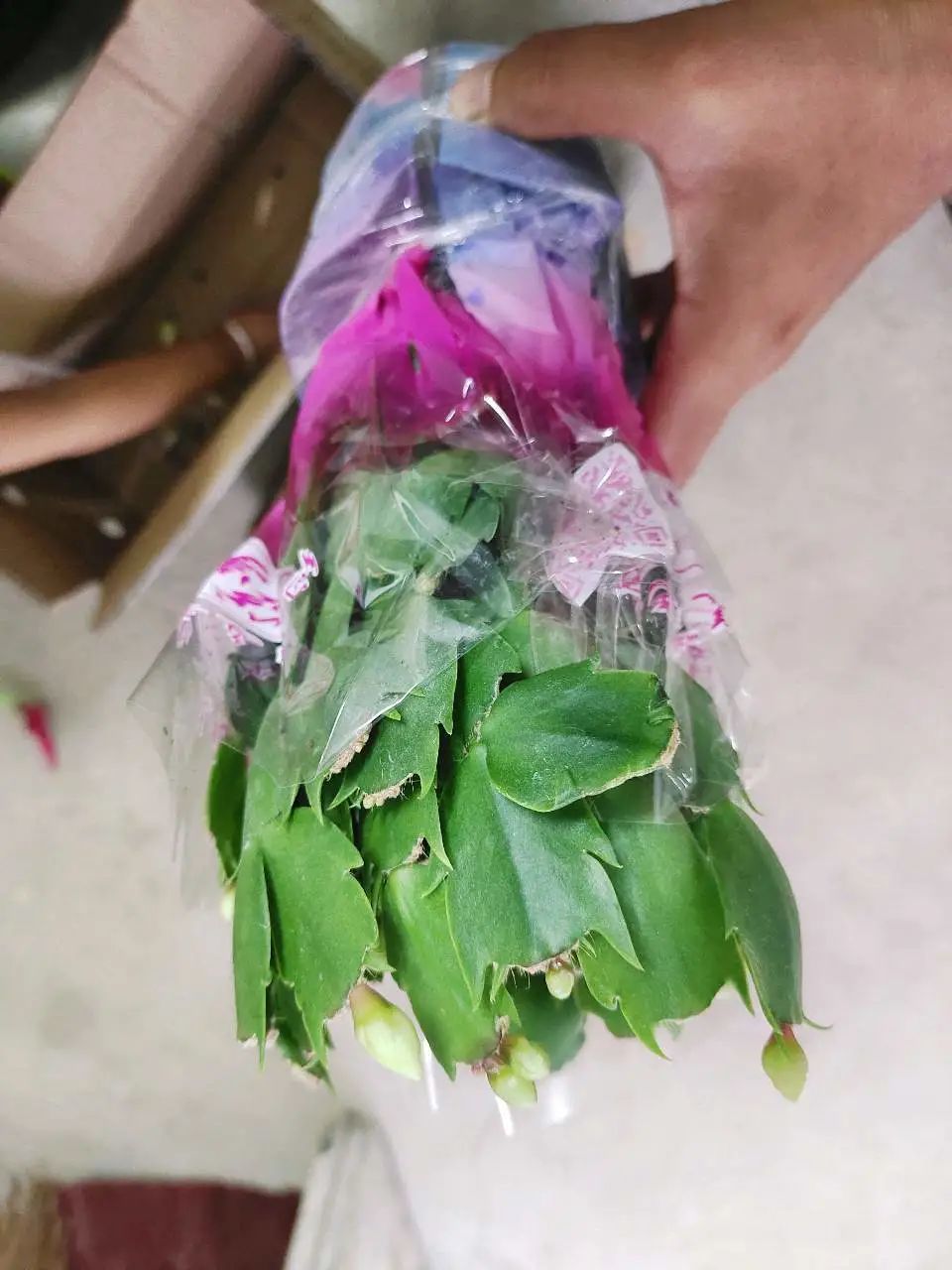 特别是刚买的盆栽蟹爪兰,一定要及时拆开包装,残叶残花及时清理干净。刚买的盆栽不要换盆(小盆养着更好活),养在通风透光的地方,过两三天就慢慢给一些散射光,土壤没有完全干透之前,都不要给它浇水。