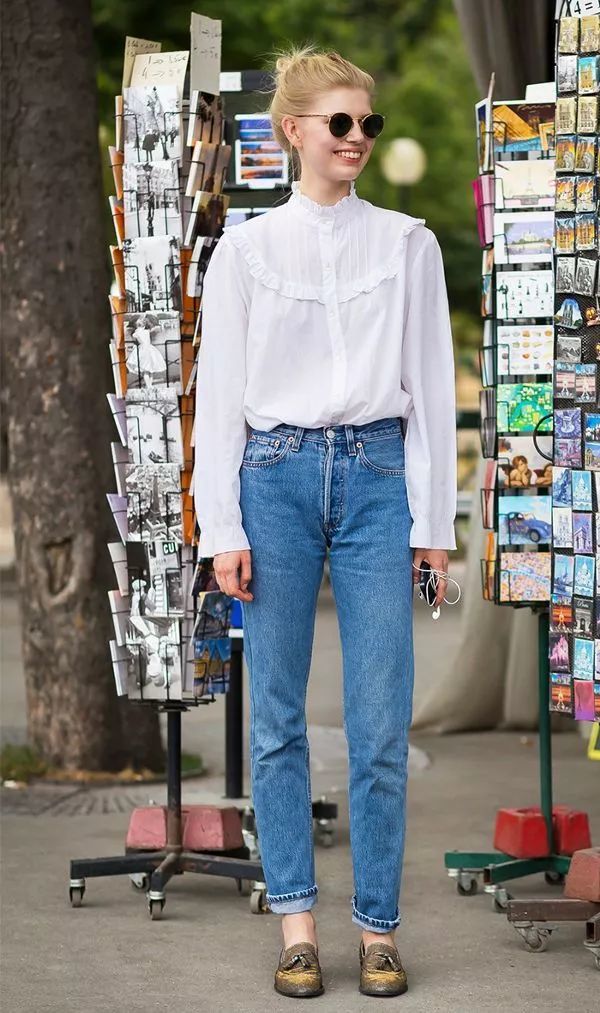 妈妈裤不仅很有复古腔调,而且还很显高显瘦。高腰的设计凸显腿长,简直是小个子女生的福音。