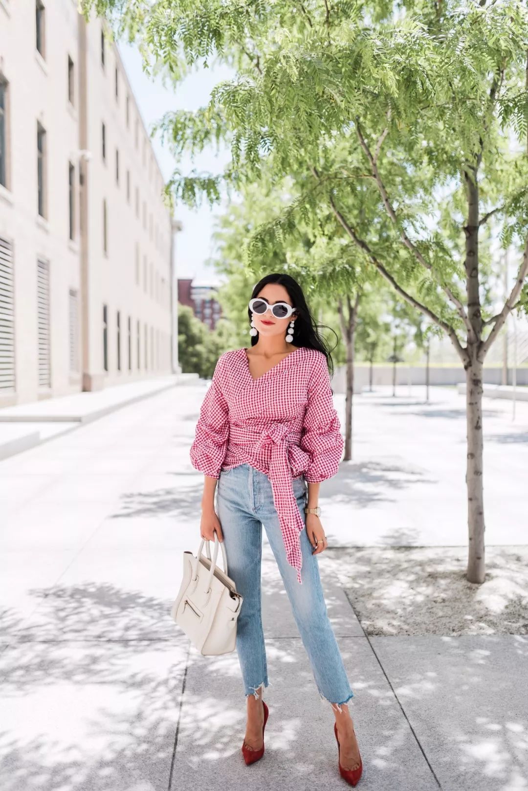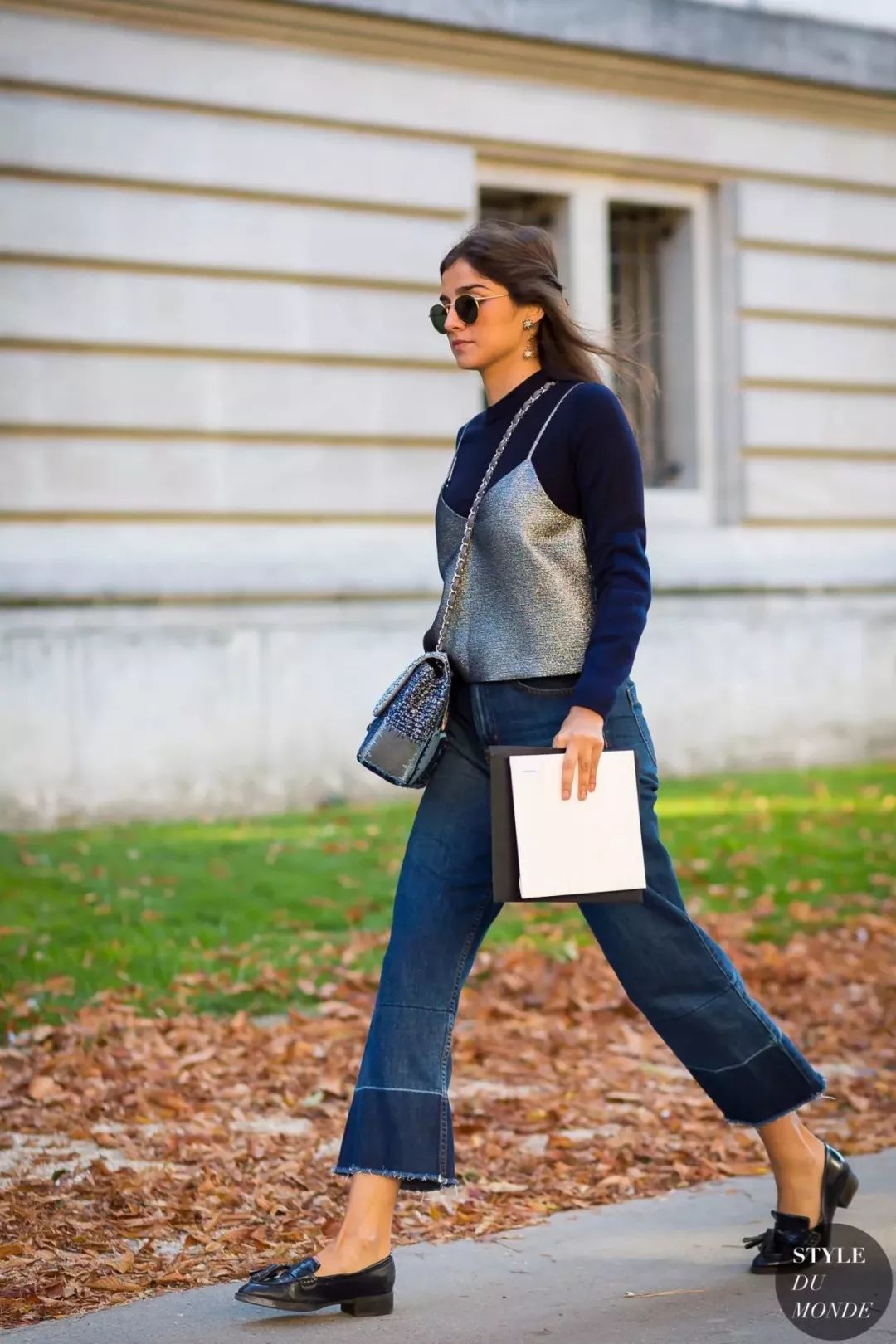 妈妈裤搭配优雅气质的 Blouse,更具复古腔调,日常通勤轻松中不失大方。
