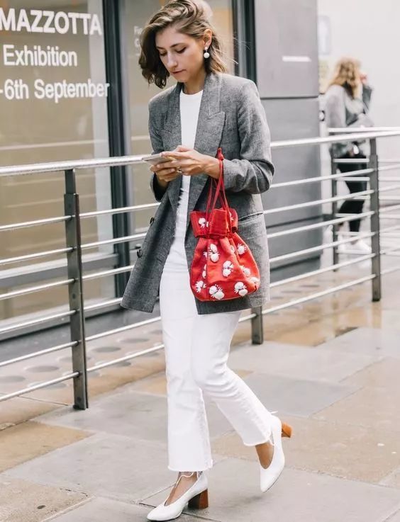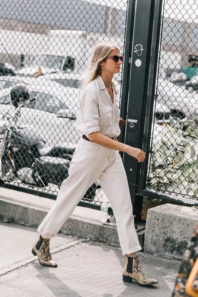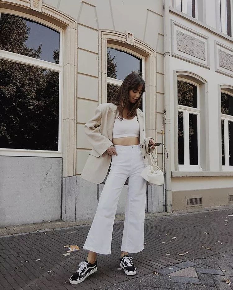 白色经典又百搭,和任何元素、颜色都能搭配,和一些鲜艳的上衣一起穿,能避免复杂之感。