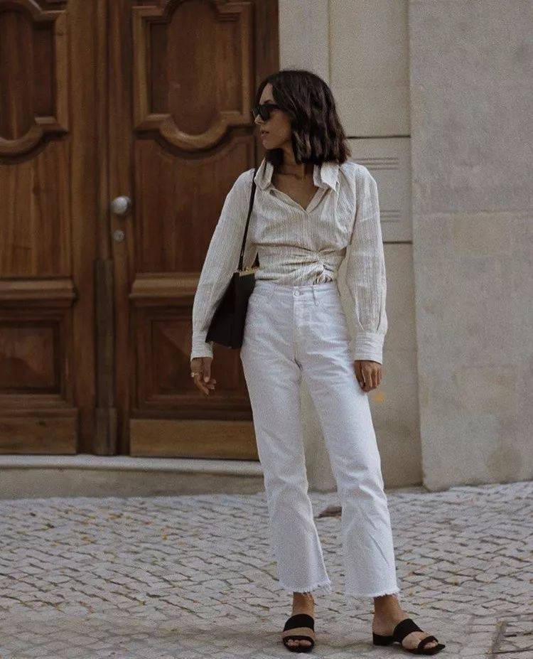 小仙女们也不用担心白色显胖什么的,选择合适的版型很重要。直筒款式宽窄适中,没有特别突兀的地方,还能隐藏一些小缺陷,搭配衬衫整个人的身型、气质都会大大加分。
