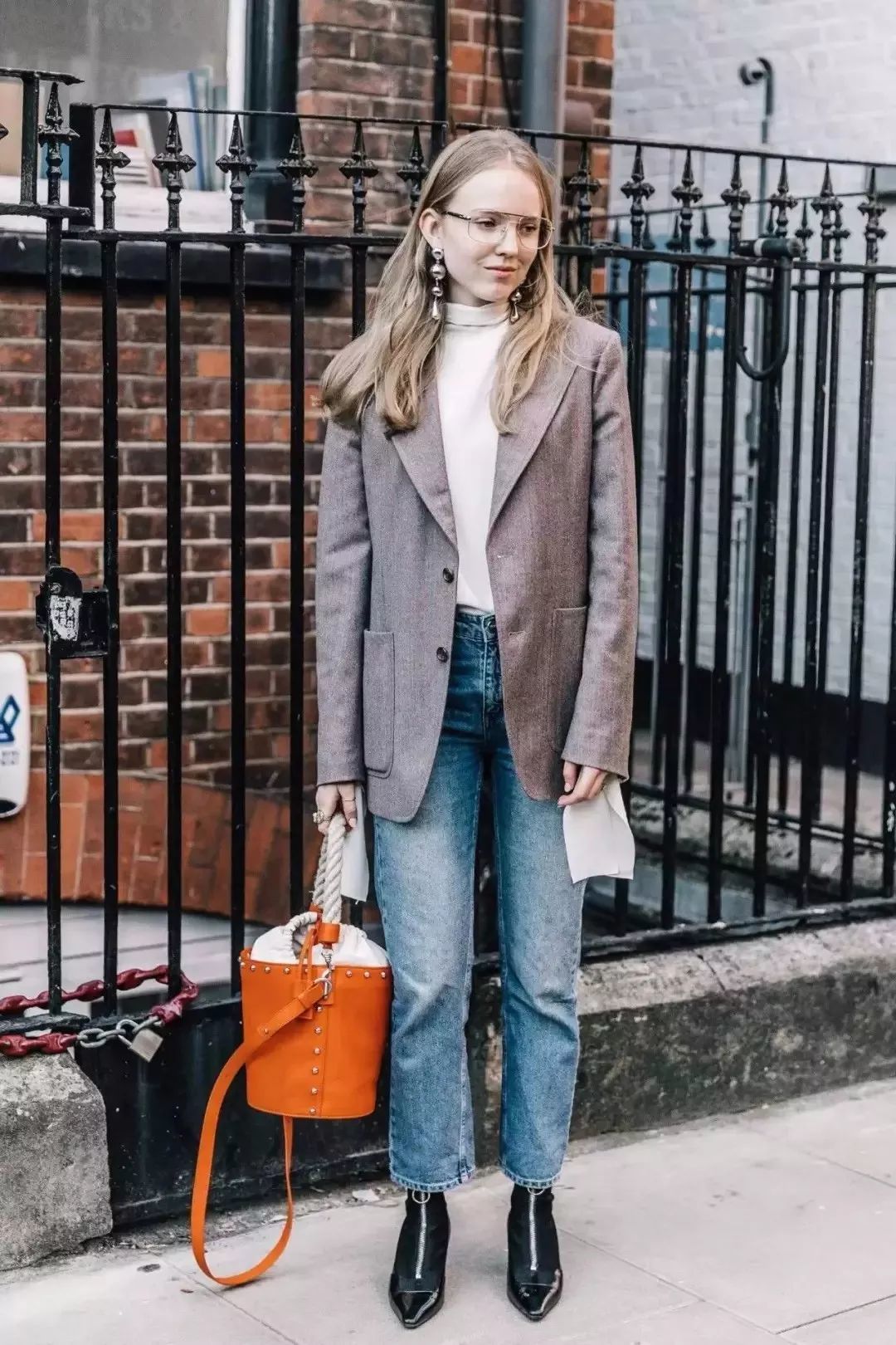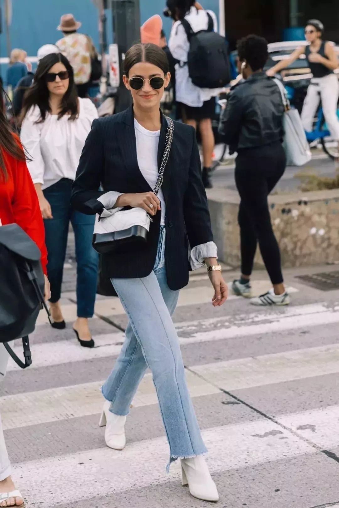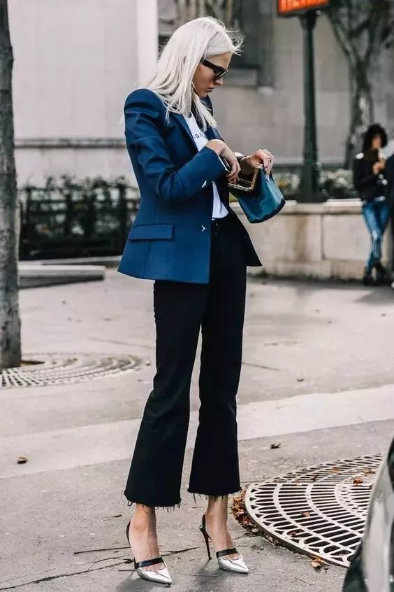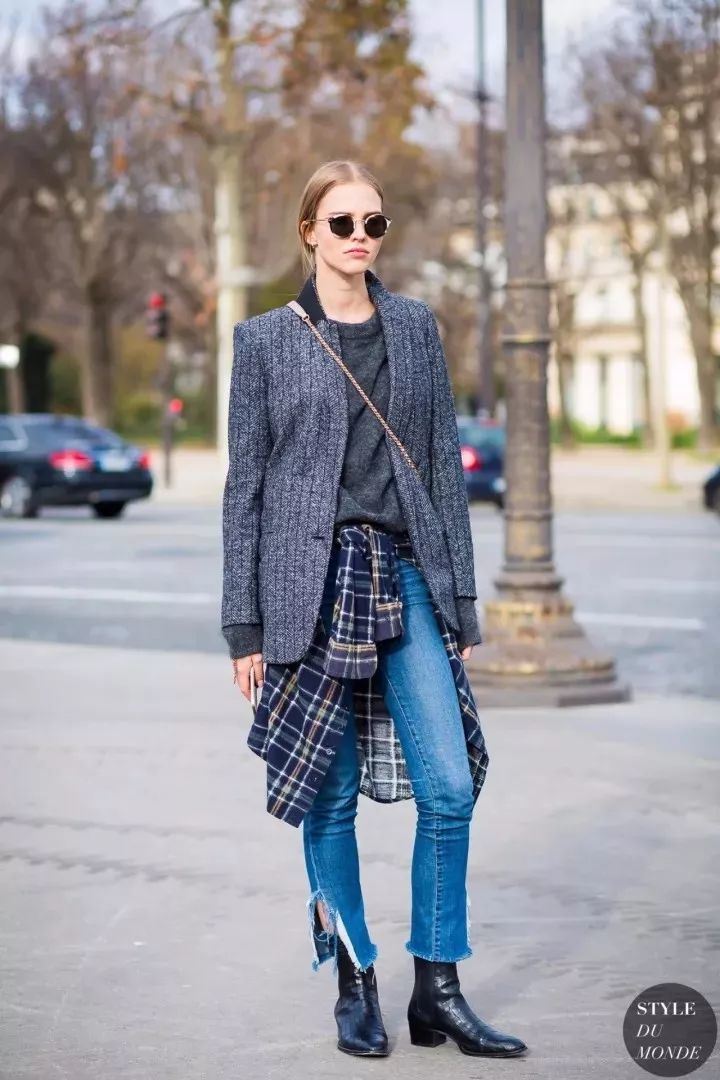 西装外套搭配撕边牛仔裤,能把正式感和休闲感恰到好处地融合起来,进可以大方优雅,退可以休闲时髦,上班逛街两不误~