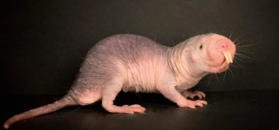 裸鼹鼠是哺乳啮齿类动物,但你只要见过它们一眼,就会发现它们和其他种类的小伙伴非常不同,它们貌似是混在啮齿动物里的“间谍”——全身几乎无毛,像刚出生的宝宝一样,身体有很多褶皱,呈肉粉色。上下门牙已经伸出嘴唇之外,巨大且突出。看起来样貌丑陋得吓人,它们也因此获得了世界上最丑的动物之一的称号。