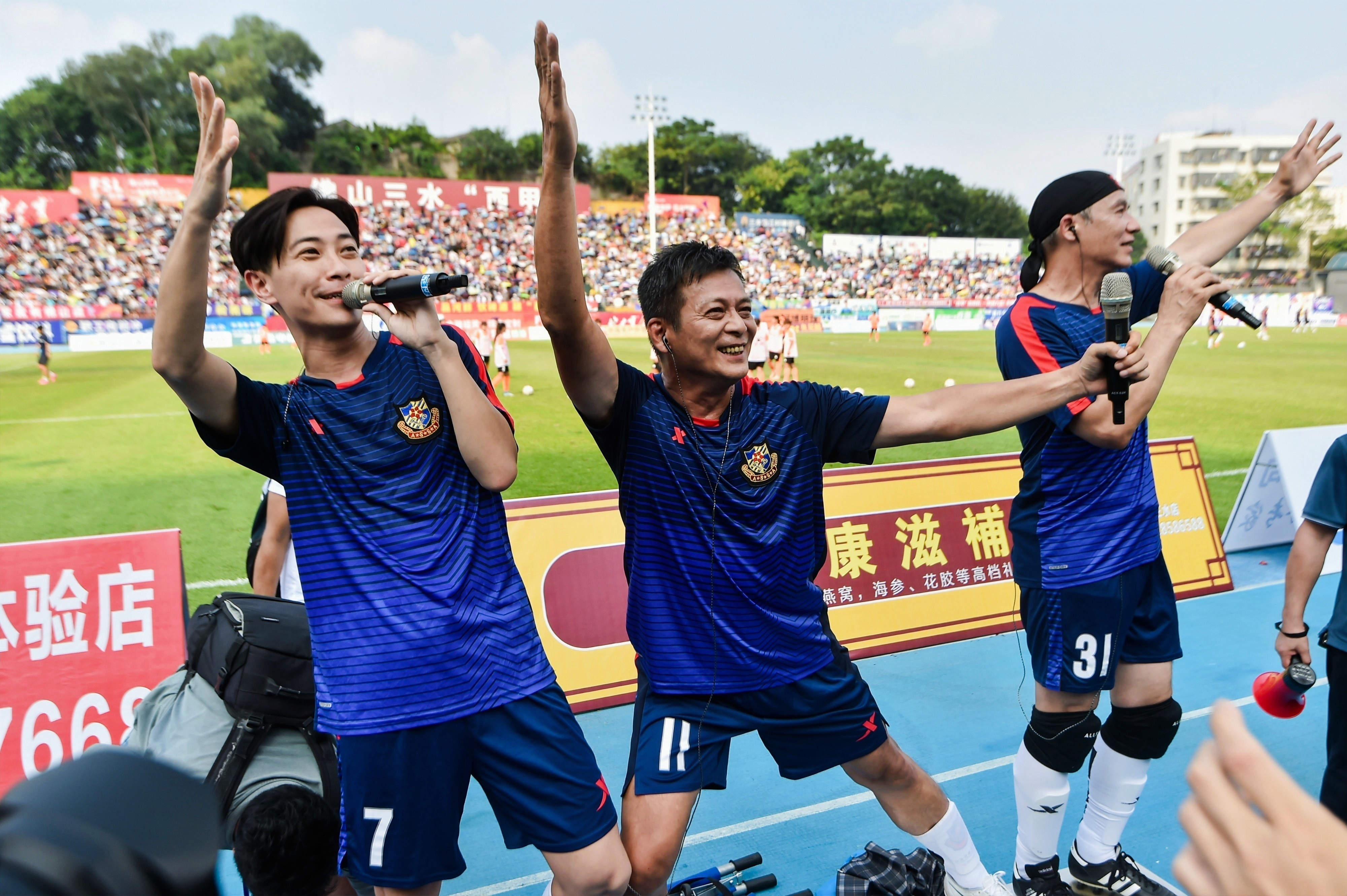 9月30日下午,“健力宝杯”第十七届佛山“西甲”职工足球联赛一场友谊赛打响,由谭咏麟、陈百祥等大咖组成的香港明星足球队现身三水云秀山体育场,与佛山女足进行“友谊波”,并在中场休息环节献唱热曲,引得全场球迷欢呼,现场氛围十分热烈,最终香港明星足球队以5比1获胜。