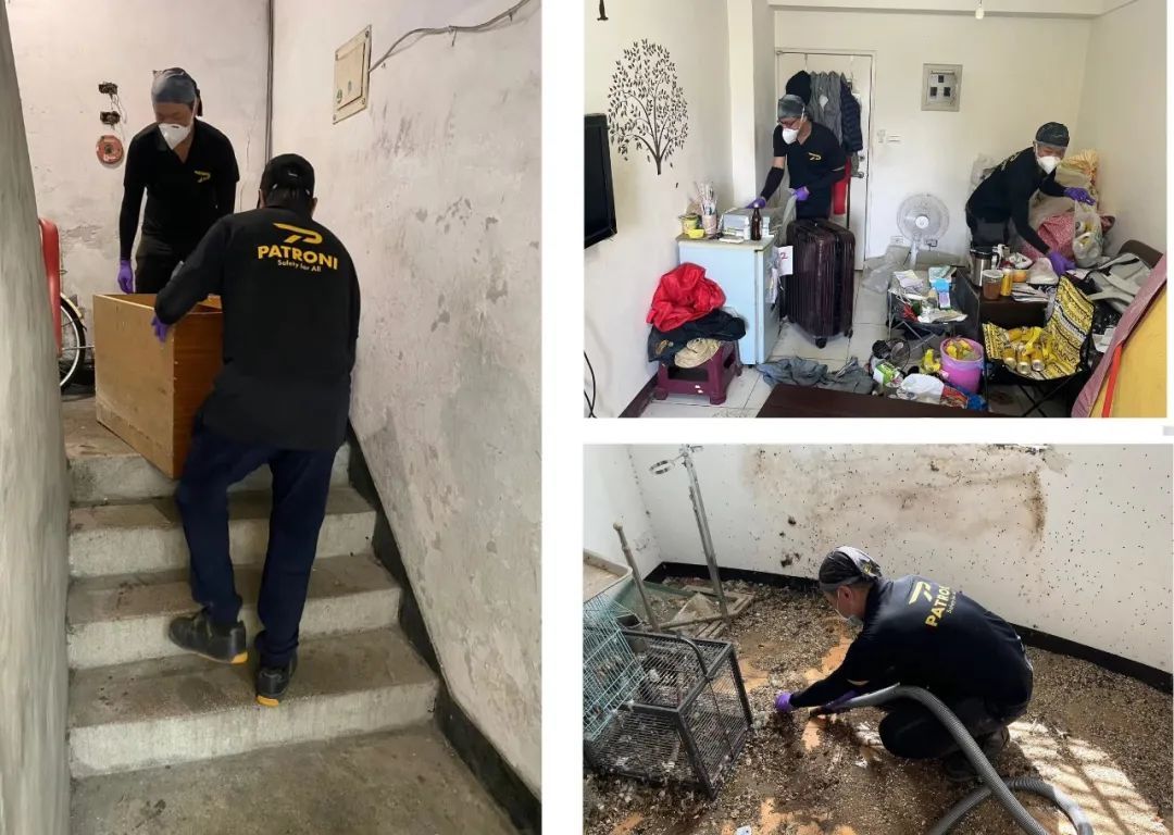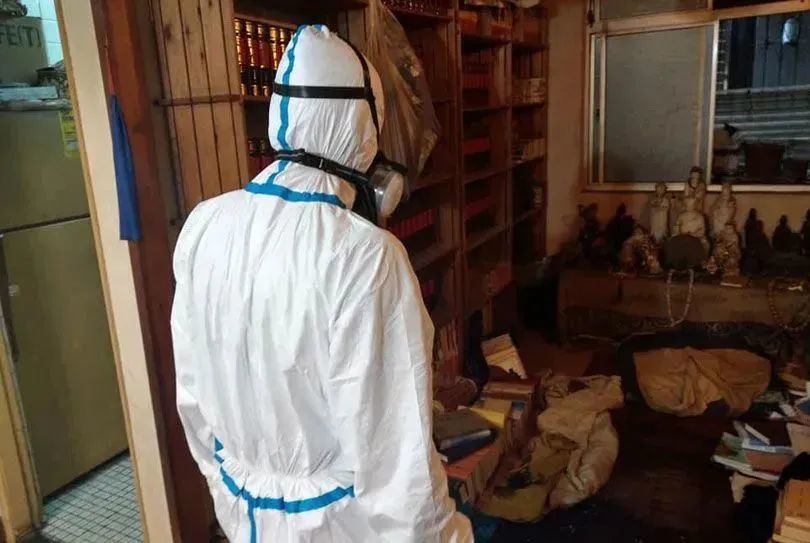 一般来说,流程是这样的:当房东或者家属拿到死者的死亡证明后,尸体被搬运走,就会委托我们上门。我们会先上门做评估,看看难度等级,判断需要多少人过去。在过程当中,就会做消毒除臭工作。
