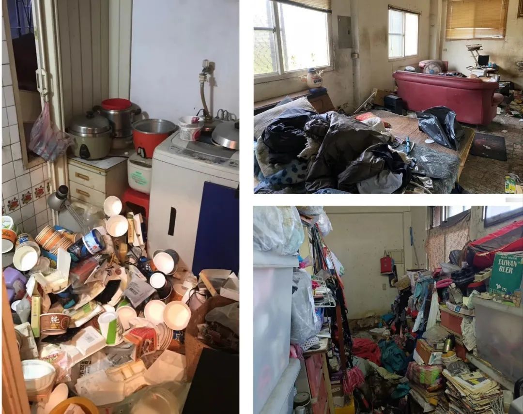 此外,大部分孤独死的人都是有“囤积癖”的。家里会堆积很多垃圾,个人物品也是堆放在家里,不做整理。有些人的房间里,杂物垃圾甚至堆到了天花板,最夸张的时候,我们要爬行才能进得去。