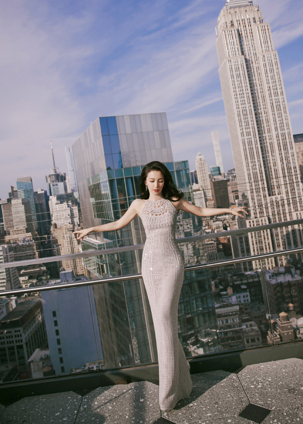 另一套金色链条丝绸长裙的造型也依旧美得让人很安心。