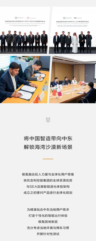 【智车派新闻】据极氪官微消息,极氪于9月29日在上海分别与阿联酋AW ROSTAMANI集团、沙特阿拉伯WALLAN集团、卡塔尔BLUE LAKE MOTORS、巴林Y.K. ALMOAYYED&SONS集团签署了国家级总代协议,将共建中东四国极氪销售服务网络。