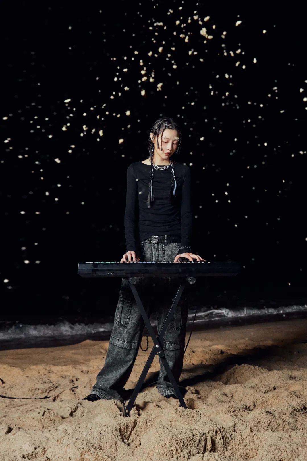 本次合作系列灵感来源于80年代的电子音乐和青年文化,“ SYNTHPOP、NEW WAVE、POST PUNK 和 HOUSE ” 是我们想要表达的概念关键词,我们希望创造一种「 Dirty vibe 」,所以有部分牛仔水洗的工艺会略重。而图案设计的灵感则来源于( Peter Andrew Saville ),我们将音乐中的声波图案进行了扭曲设计,并将具有代表性的街头风格剪裁与 Lee 经典版型轮廓相结合。总之,叛逆精神是我们想要在这个系列中表达的。