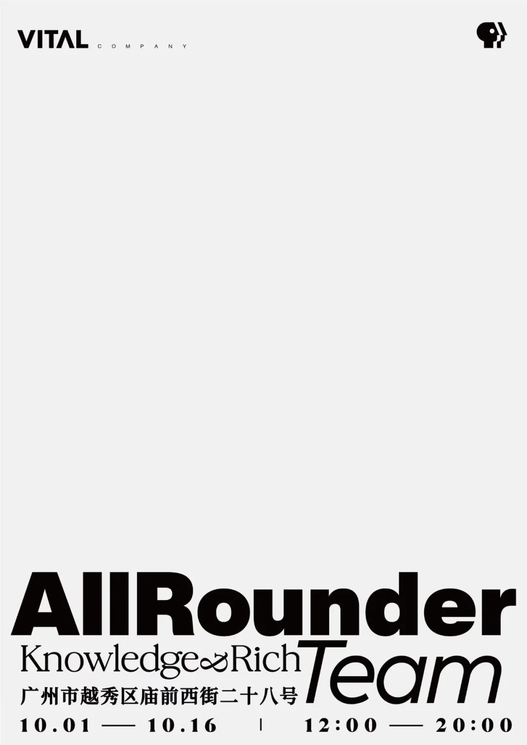 ALL ROUNDER TEAM首个Pop Up Store将于 10月1日至10月16日在广州东山口VITAL Company正式开启,欢迎各界朋友加入这个「全能选手组织」。Knowledge is the Key