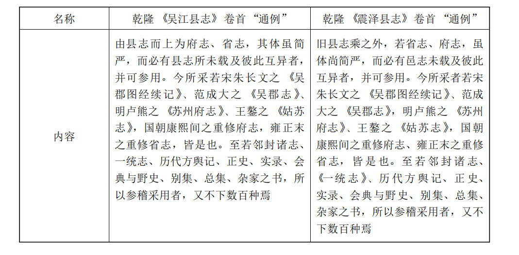 从方志的编纂质量来看,这样仓促地调整原作者撰著体例的行为会产生不小的负面影响。另一方面,无论是卢熊、宋濂还是汤德等苏州知府,他们都很不幸地在是书刊刻不久纷纷罹祸,《洪武志》很可能仅在洪武十二年 (1379) 刊刻过一次。但这两方面因素并未阻止这部明代苏州地志之祖的影响,王鏊为正德 《姑苏志》撰写的 《重修姑苏志序》中就明言“范成大、卢熊二志,由今而观,范志骏而整,卢志详而赡”,并依照“合范、卢二志,参以诸家,禆以近事”的原则修订 60 卷新志。类似的例子还出现在下一级的行政单位编纂地志时,如弘治年间莫旦纂 《吴江志凡例》即称说 “参之以范氏 《吴郡志》、卢氏 《苏州府志》及诸史百氏、古今碑刻谱牒”。不过,这样的情况在入清以后有所变化。康熙年间 《苏州府志》82 卷编纂仓促,“资料的搜集又很局限”,没能采录 《洪武志》,因此乾隆年间重修 《苏州府志》时就“依据范、卢、王三志,而于其中文择其善,事从其核”。随着时间推移,旧志提供的信息越来越无法满足新志的编纂需求,作为参考资料来源的地位也会逐渐下降,这是情理之常。乾隆 《苏州府志》对 《洪武志》的使用和强调是清代苏州方志编修中 《洪武志》的最后辉光,在其后虽然也有“今所采若……明卢熊之 《苏州府志》”这样的表述在乾隆 《吴江县志》卷首出现,似乎县级地志编纂中还会利用 《洪武志》,但基本一样的文字也出现在乾隆 《震泽县志》卷首中: