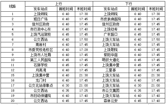 (二)广丰区公交线路冬季运营首末班时间(10月2日执行)