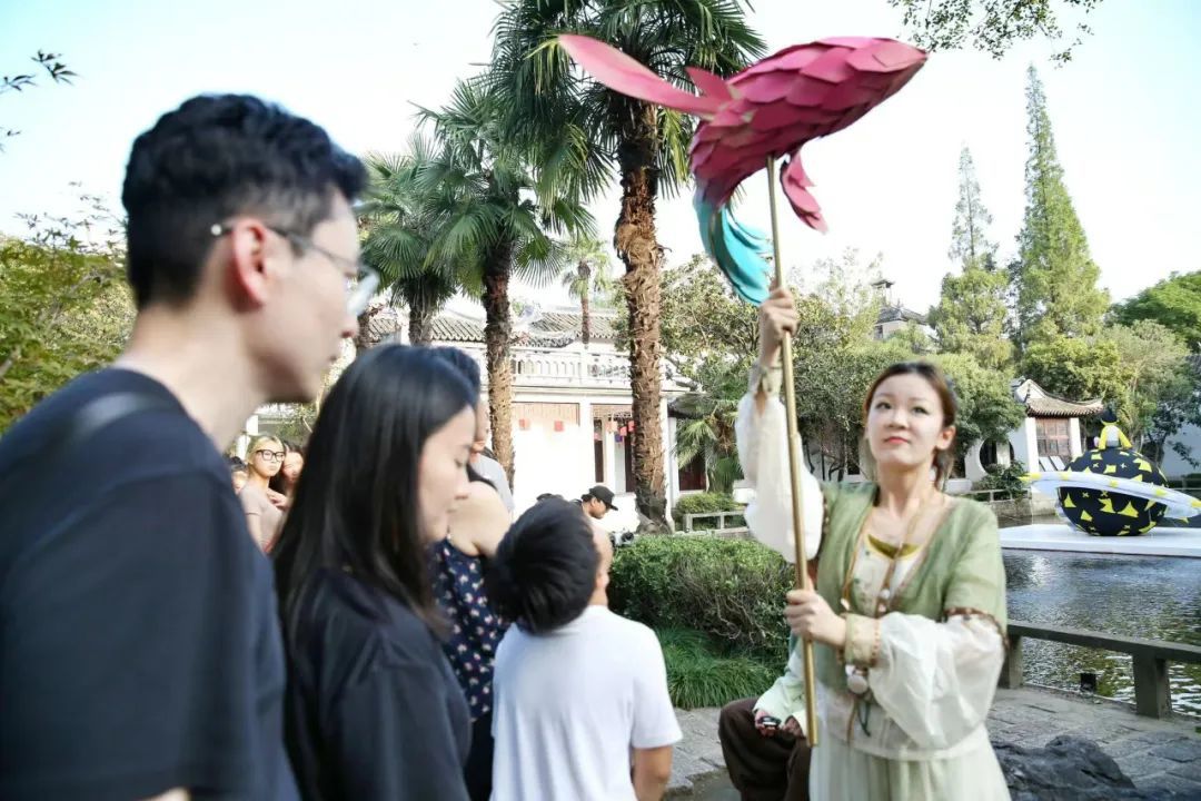 先锋的、实验的,当下多元的艺术手法在古典园林里交融演绎,观众们甚至可以跟随《鱼池记》从藏书楼出发,沿池漫步,来到水边,领略一场与皮影戏结合的动人传说。