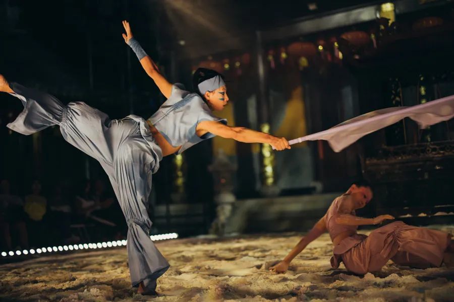 曾缔造极致东方美学舞台的艺术家赵梁为本次艺术季创排的舞剧《神人畅》无疑是最受关注的。实景式的演出,打破了台上台下的格局,舞者与观众在同一平面,令舞者与观众同在“画中游”。
