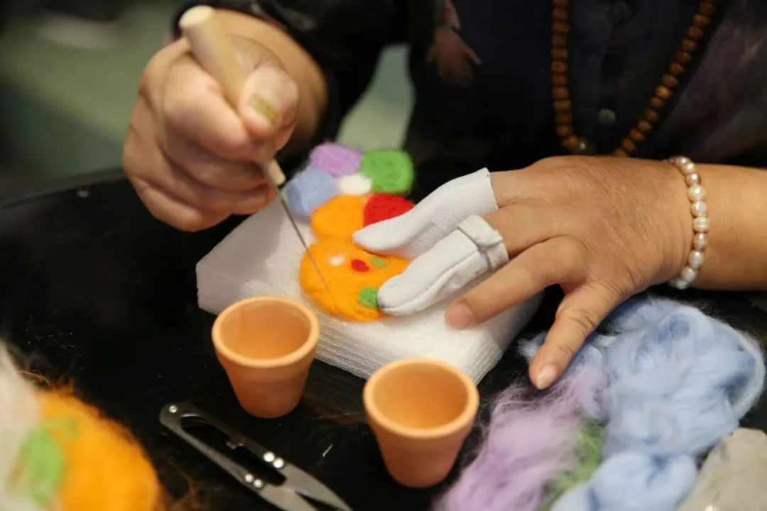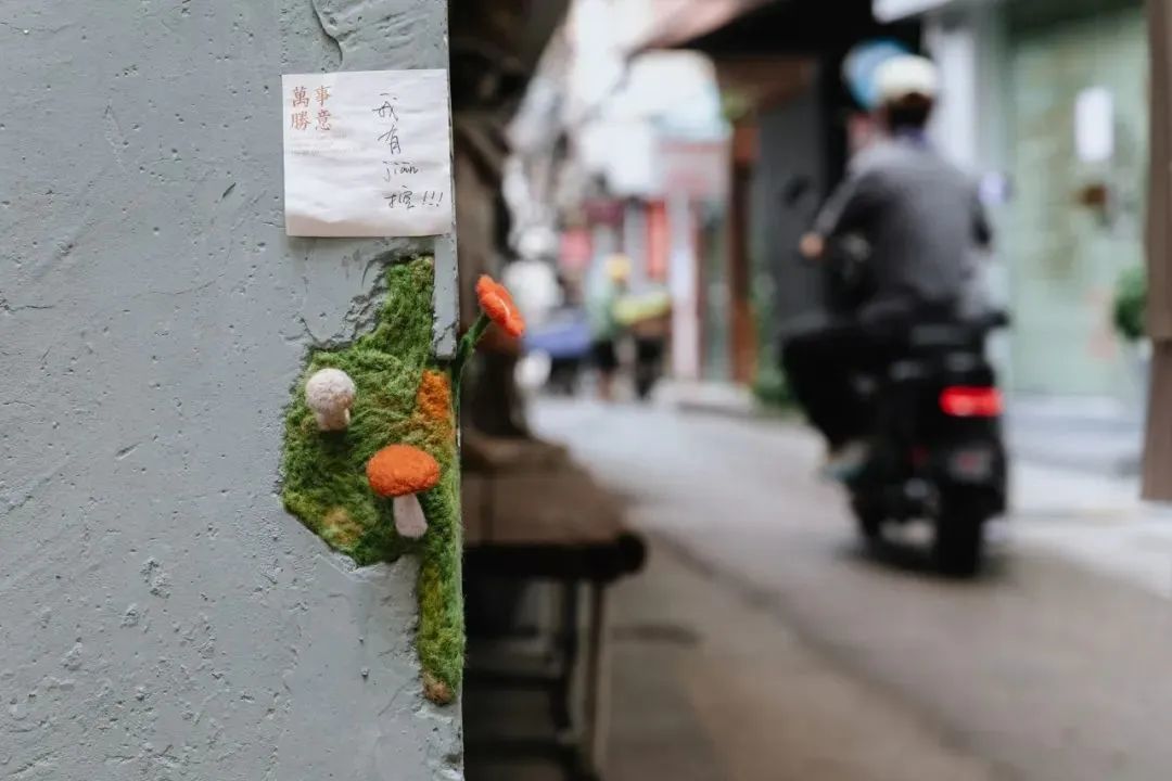 待小男孩长大,主修艺术的天天试图用一种更浪漫的方式修补城市。他用一双巧手制作出一朵朵毛茸茸的小花,为老街、老房子的缺角打上“治愈”补丁,“这项行动还将继续下去,这次来参与朱家角沉浸艺术季,让更多人接触毛毡艺术收获一份喜悦,回去可以在自家的花园里、天台上,找一处缺角‘种下’小花。”