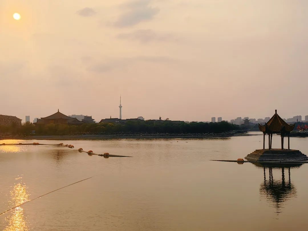 在我去的时候,潘家湖冷清到有只孤单的水鸟,另一旁杨家湖里,一群开封大爷正在夕阳下玩起了浮沉。