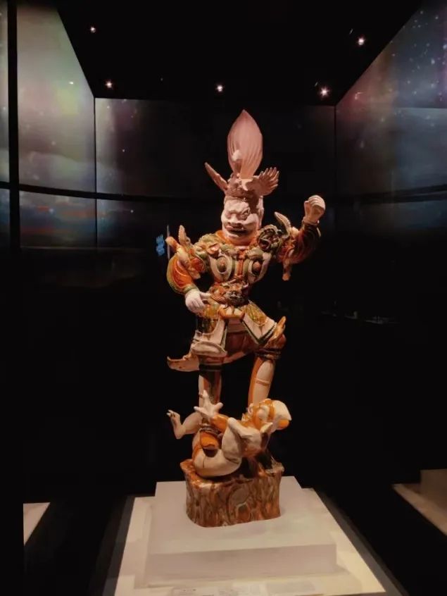 洛阳博物馆,一个市级博物馆,里面的文物含金量也极高,充满了彩蛋,其中有类文物,叫隋唐三彩天王像。