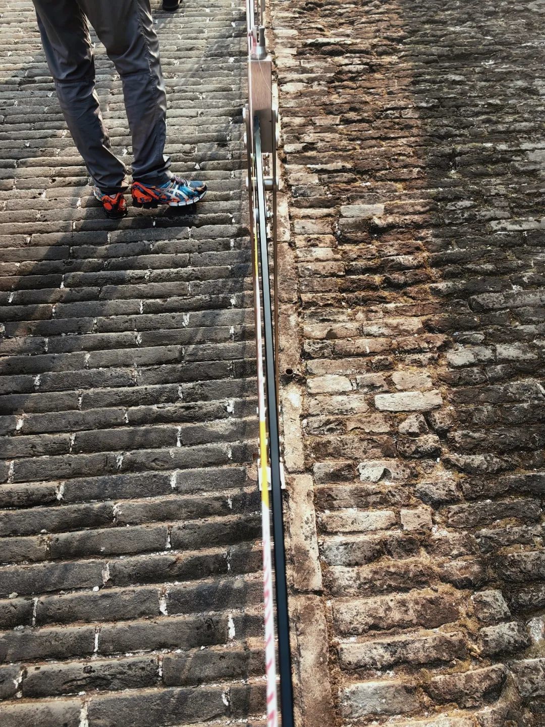 开封的有关部门很用心地将如今复建的马道和清朝的马道分割开来,一道护栏,左侧是现在,右侧就是历史。