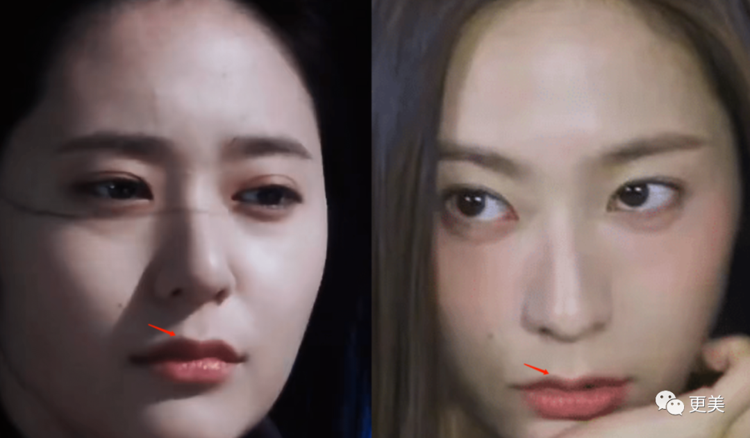 △左边安宥真鼻部阴影被凸嘴顶了起来