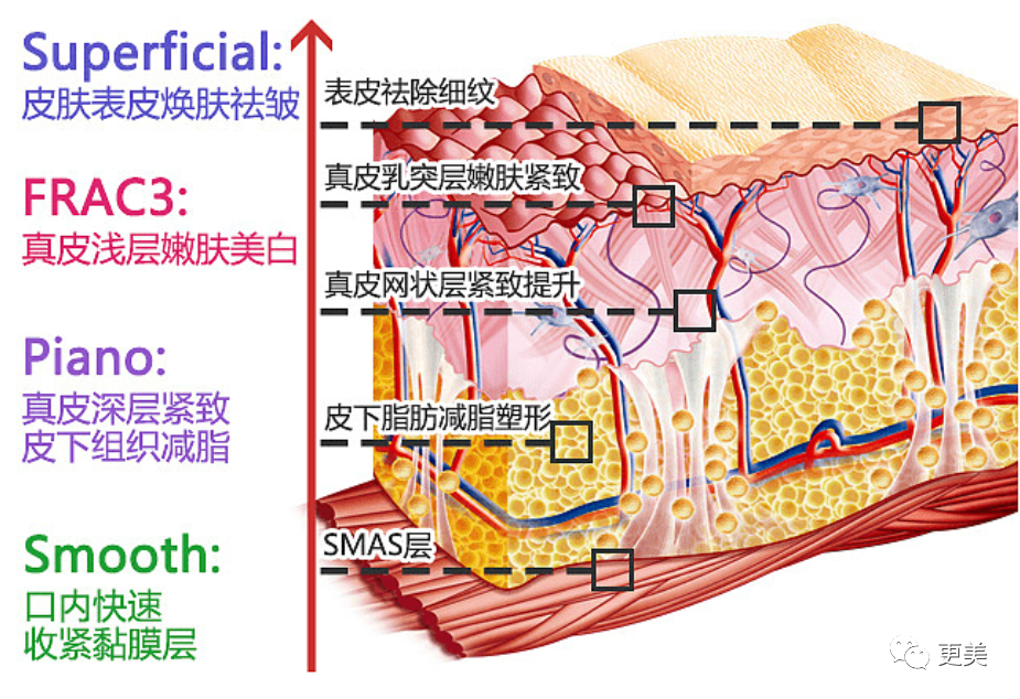 之前介绍过的热玛吉(真皮层)、超声炮(筋膜层)以及埋线(皮下层)都是口周抗衰、针对皮肉紧致复位的有效利器。