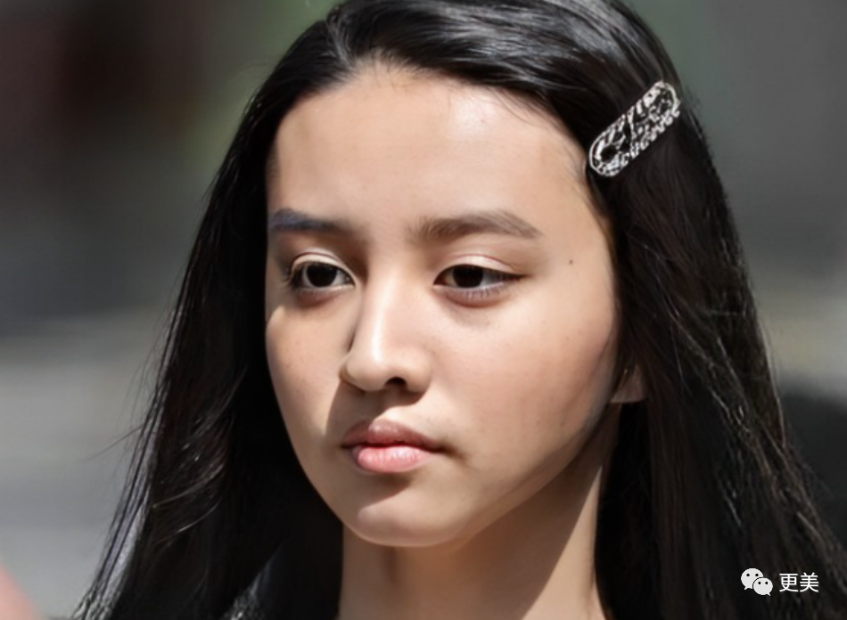 高曝光下,可以看见她嘴部带来的阴影,和张元英的镜头角度有点不同,但依旧能品出颌面规整与不规整之差。