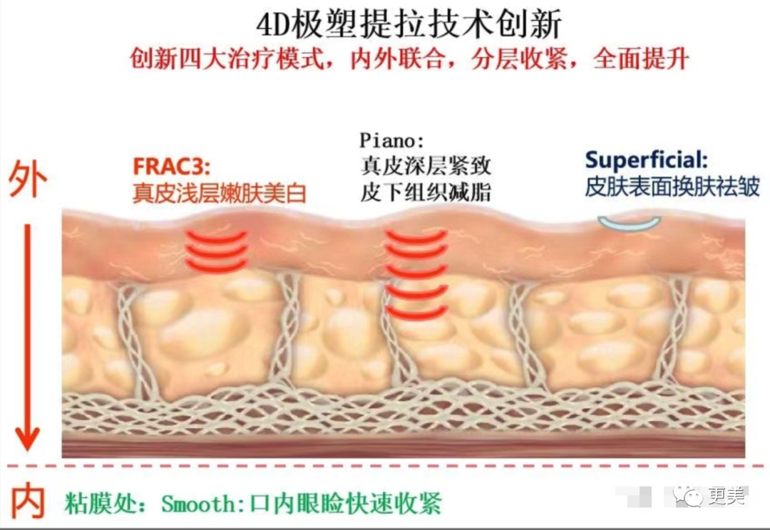 可Fotona 4D Pro可以从外到内,从真皮层到筋膜层逐一、整体、针对性解决皮肤各层皮肤问题,不限于口周,而是实现整体全面的抗衰。