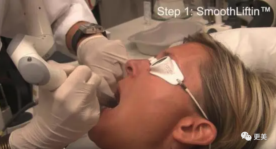 仪器头直接在口腔内操作,使用2940NM激光配合独有的smooth模式专利技术直接作用在离筋膜层很近的口腔粘膜部位。