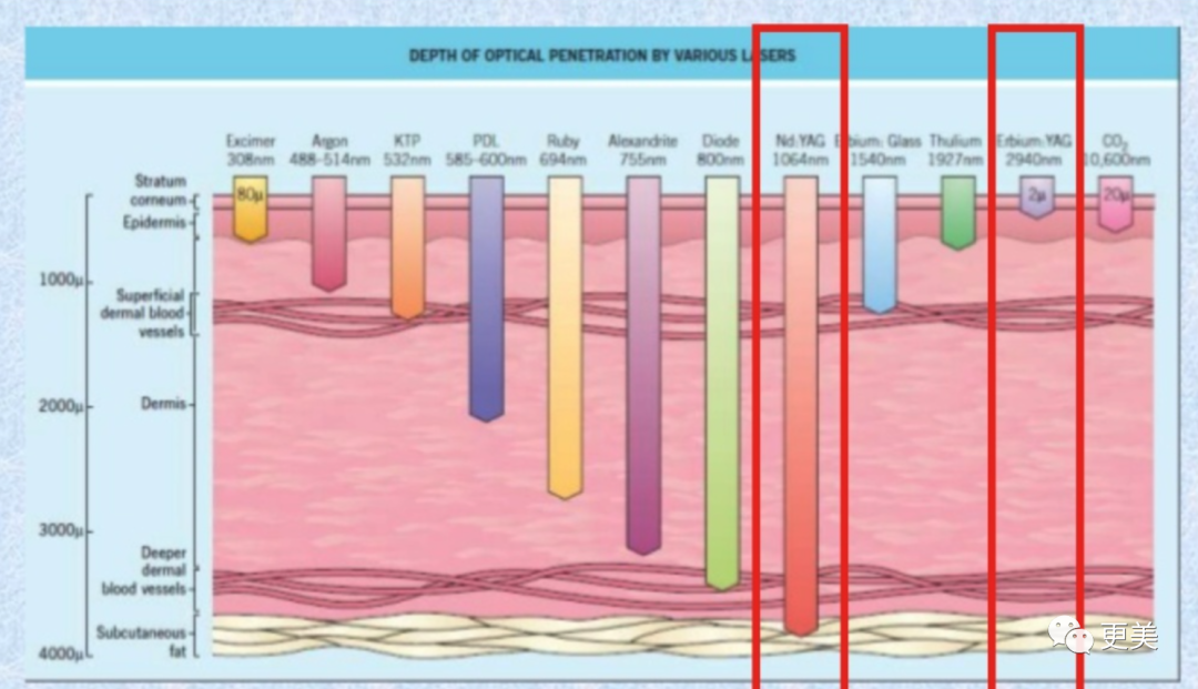 2940nm发射出来的激光是水,可通过水的气化作用对最上层皮肤进行逐层消融。
