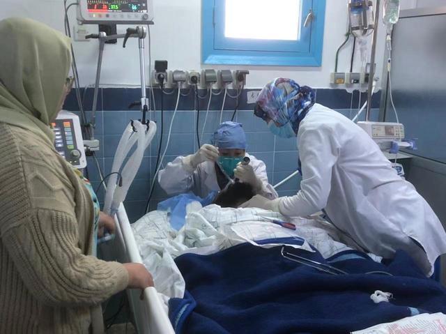 手术最终顺利完成。术中发现,病人是股疝小肠嵌顿,局部小肠已淤血水肿,时间再长就可能肠坏死。经精心手术、悉心护理,病人当晚就能饮水,第2天就下床走动,5天后痊愈出院。出院时病人和家属拉住队员们的手,不停地用阿拉伯语说:“suklan suklan(谢谢)”。