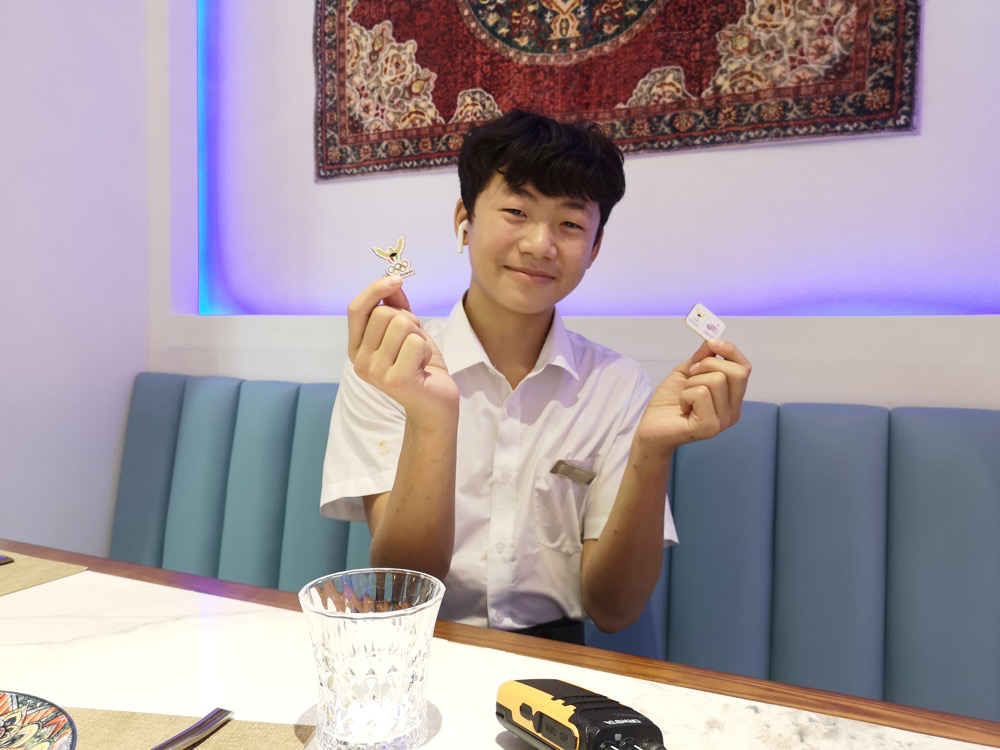 临走之时,将代表着团队荣誉的徽章赠予店内服务员!