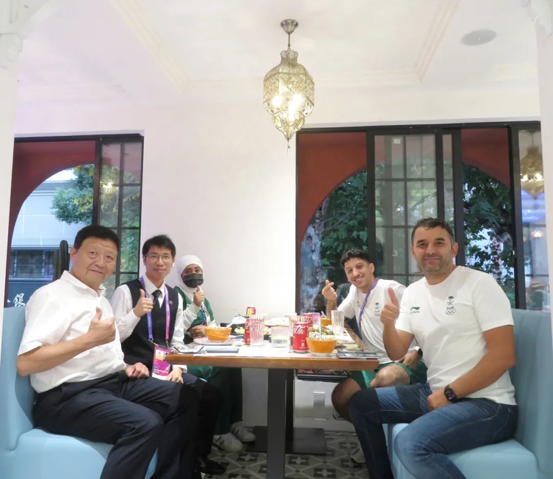 其中一位来自科威特的运动健儿用生硬的普通话说到:“这里的菜品非常好吃,我之前就已经把这里的照片发给了我的朋友们。”当店内服务员翻出与客人的合影时,对方激动的直呼:“ This is my friend!”