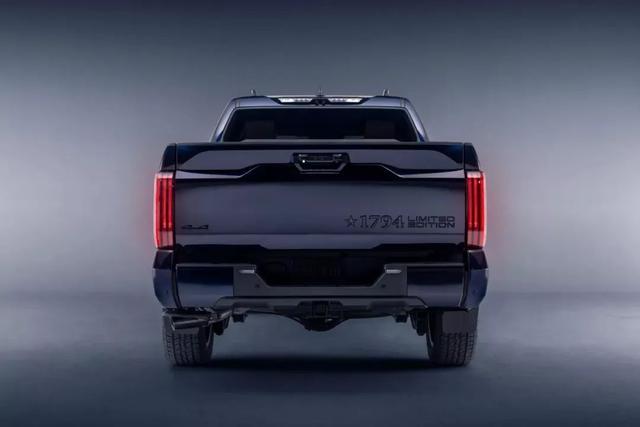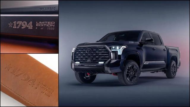 丰田发布2024年款坦途1794限量版。1794命名是致敬了成立于1794年的德克萨斯州牧场,该牧场位于圣安东尼奥附近,后来成为了丰田圣安东尼奥工厂,丰田红杉、坦途都出厂于这里。在外观设计上,坦途1794限量版采用了深色镀铬格栅和熏黑设计饰条,为车辆增添了一份独特的神秘感和力量感。专有徽章的配备,更是凸显了这款车的特殊地位。与此同时,颜色提供风寒珍珠色、午夜黑金属漆、蓝图色和烟熏梅斯奎特漆四种颜色的选择也为消费者提供了更多的个性化选择。底盘方面,坦途1794配备直径为2.5英寸的FOX内部旁通减震器,底盘高度升高1.1英寸,还有越野轮毂和轮胎组合。内饰方面,丰田与马鞍皮革公司合作生产了一种独特的高级皮革,后排座椅口袋像手工缝制,像马鞍袋还带有皮扣固定。这些细节的处理不仅提升了车辆的豪华感,也让驾驶者拥有更加舒适的驾驶体验。每辆车的仪表板上都有一个浮雕标签,多处可见印有1794标记,更加彰显了这款车的特殊地位。丰田内饰设计师还和Saddleback联手开发了一些限量周边供车主使用,如大型过夜包、工具卷、车主文件夹、钥匙套和一个小袋子。坦途1794限量版于明年春季发售,限量供应1500台。