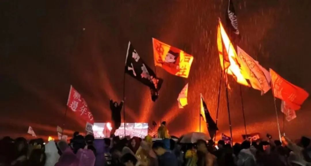 舞台下,到处都是挥舞的双手和旗帜,现场乐迷跟随音乐舞动,激情澎湃。