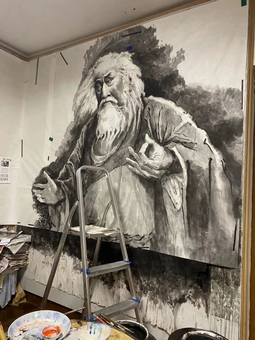 墙上为《道德经》系列大尺幅作品(未完成)